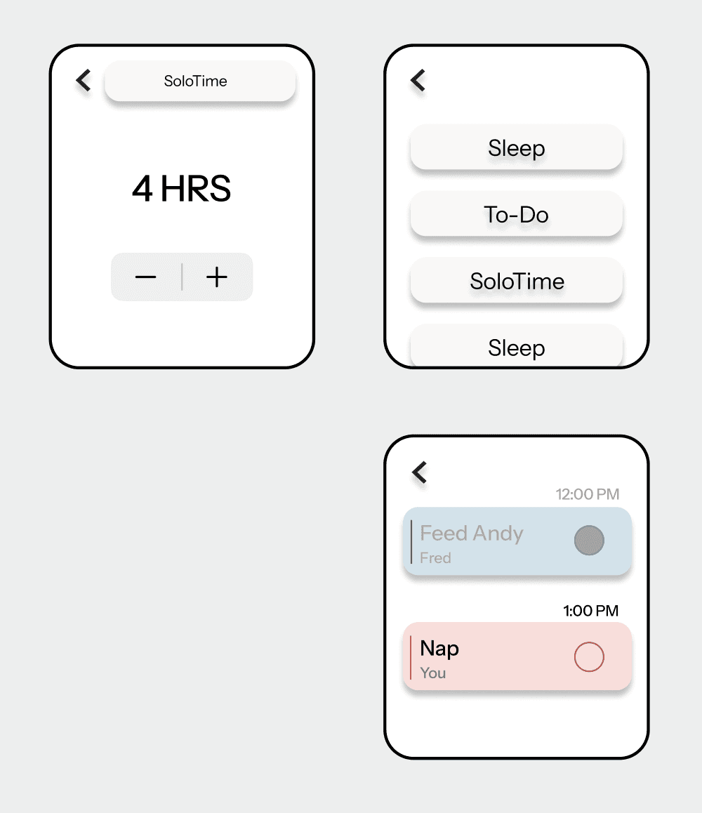 Built a smartwatch app that helps new parents balance caregiving with self-care through gentle reminders, shared tasks, and activity tracking.